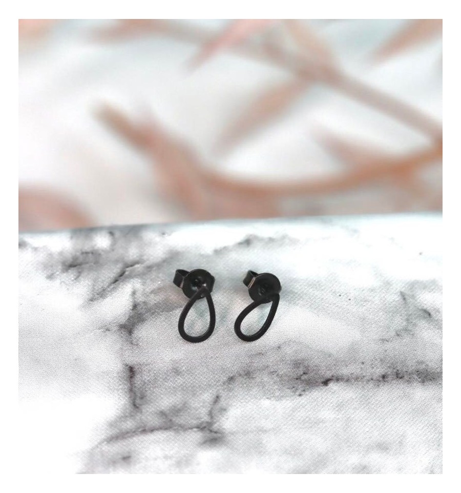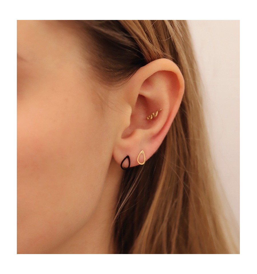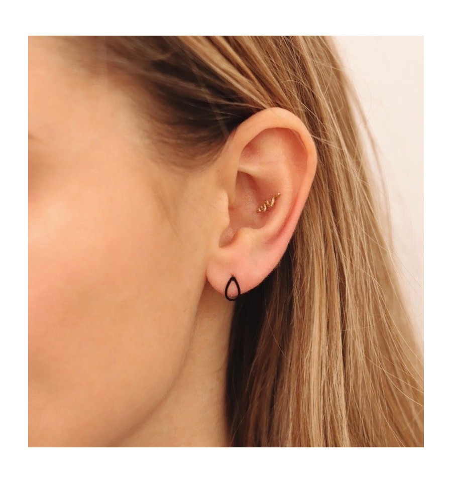Ørestikker med dråbe. Kan købes i guld og sort. Fremstillet i kirurgisk stål